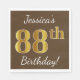Den här enkla pappra napkin-designen innehåller ett meddelande som "Jessica's 88 Birthday!", där "88:e" har ett faux guld-liknande utseende på en brun färgad bakgrund. Namn kan anpassas. Den skulle kunna användas i en födelsedagsfest till någon som firar sin åttioåttonde födelsedag. [~Z0000082]
