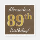 Den här enkla pappra napkin-designen innehåller ett meddelande som "Alexander's 89 Birthday!", där "89:e" har ett faux-guld-liknande utseende på en brun färgad. Namn kan anpassas. Den skulle kunna användas i en födelsedagsfest till någon som firar sin åttionionde födelsedag. [~Z0000082]