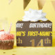Den här pappra designen innehåller ett meddelande som "FIRST-NAMN's 14:e BIRTHDAY!", där "14:e" har ett utseende som liknar guld och liknar färg, och med namn och "BIRTHDAY" i ett roligt, fet stil. Namn kan anpassas och bakgrunden är färgad brun. Att packa pappert som detta skulle kanske kunna användas när man fyller på födelsedagskalkyl som ges till någon i firande på deras fjortonde födelsedag. [~Z0000211]