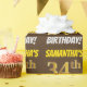Den här pappra designen innehåller ett meddelande som "SAMANTHA'S 34th BIRTHDAY!", där "34th" har ett utseende som liknar guld och liknar färg och med namn och "BIRTHDAY" i ett roligt, fet stil. Namn kan anpassas och bakgrunden är färgad brun. Att packa pappert som detta skulle kanske kunna användas när man fyller på födelsedagskalkyl som ges till någon i firande på 34 år. [~Z0000211]