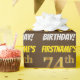 Den här pappra designen innehåller ett meddelande som "FIRSTNAME's 74:e BIRTHDAY!", där "74:e" har utseendet faux/imitation guld-liknande färg och med namn och "BIRTHDAY" i ett roligt, fet stil. Namn kan anpassas och bakgrunden är färgad brun. Att packa pappert som detta skulle kanske kunna användas när man fyller på födelsedagskalkyl som ges till någon i firande på deras sjuttiofjärde födelsedag. [~Z0000211]