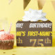 Den pappra utformningen av denna förpackning innehåller ett meddelande som "FIRST-NAMN's 75:e BIRTHDAY!", där "75:e" har ett utseende som liknar guld och liknar färg, och med namn och "BIRTHDAY" i en roligt med fet stil. Namn kan vara personlig, och bakgrunden är färgad brun. Att packa pappert som detta skulle kanske kunna användas när man fyller på födelsedagskalkyl som ges till någon i firande på deras sjuttiofemårsdag. [~Z0000211]