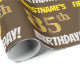 Den här pappra designen innehåller ett meddelande som "FIRSTNAME's 85:e BIRTHDAY!", där "85:e" har ett utseende som liknar guld och liknar färg, och med namn och "BIRTHDAY" i ett roligt, fet teckensnitt. Namn kan anpassas och bakgrunden är färgad brun. Att packa pappert som detta skulle kanske kunna användas när man fyller på födelsedagskalkyl som ges till någon i firande på deras åttiofemte födelsedag. [~Z0000211]