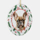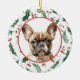 Brown Fransk Bulldog Red Berry Holly Gräns Julgransprydnad Keramik