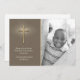 En snyggt kristen inbjudan i ljusbrun med guld crucifix och glödande effekt. Visas som en första Heligas-kommandoinbjudan, men kan anpassas för alla religiösa-händelser, inklusive baptismer, schemaläggningar eller bekräftelser.