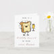 Det här humoristiska kortet med texten "Här är en liten skål för ditt nya hem" och en söt illustration av en skål som dricker champagne är perfekt för att skicka lyckönskningar till någon som uppskattar humor och/eller kawaii-serieteckningar. Eftersom texten kan ändras kan du använda kortet för andra tillfällen. Klicka på "Personalisera den här mallen" för att anpassa meddelandet och namnen. Om du vill ändra textens färg går du till "Redigera med hjälp av designverktyget".