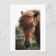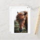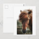 Detta vykort innehåller ett närliggande foto från porträtt av en brun häst i fält.