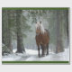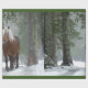 Brown Horse i en vinter-skog med Snö-fall Presentpapper