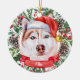 Den här sofistikerade keramiska julprydnaden har en vattenfärg av ett vackert Husky med brunt och vitt päls i en julhatt, omgiven av helgdag greenery, pinekoner och bär, med en röd banderoll med ditt sällskapsdjurs namn (eller byte till God jul). Du kan anpassa den här utformningen helt genom att ändra hälsning och år bakåt i ett elegant-teckensnitt. Det här är en snyggt, men billig, anpassningsbarnas julprydnad, och det är perfekt för Husky älskare, hundälskare eller djurälskare.