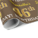 Den här pappra utformningen har ett meddelande som "Samantas 46:e BIRTHDAY!", där "46:e" har ett utseende som liknar guld och liknar färg. Namn kan anpassas och bakgrunden är färgad brun. Det kan kanske användas när man slår in presenter för någons fyrtiosjätte födelsedag. [~Z0000180]