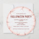 Spooky Halloween fest inbjudningsdesign med Desteis tecknad illustration av en röd blåsögonboll med en brun färg iris. På andra sidan finns det textområden som kan anpassas efter omständigheterna.