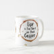 En snyggt, modern och elegant keramiskt kaffe mugg med en rundad kropp och ett böjt handtag, med ett fet, lekfullt och modernt sansserif-typsnitt med frasen "Livet är för Kort för dåligt kaffe" i en rik, mörk chokladbrun färg, kontrasterad mot en skarp, ljusstark och snövit bakgrund, med en subtil gradient effekt för att ge ge en. Den förstklassiga och sofistikerade utseendet, den text som går i centrum och fyller större delen av mugg yta, med en nyans som ger en nyans av djup och dimensioner, som ställs mot en ren och minimalistisk vit bakgrund som betonar muggens form och design, med en lätt vinklad effekt som gör att det centrala budskapet uppmärksammas.