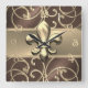 Brown och Guld Filigree Swirls Fleur de Lis Fyrkantig Klocka