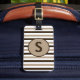 En brun, brun och vit stripe mönster dekorerar detta fina bagagetagg, med ett runt textområde på framsidan, med ett enda brev-monogram. Baksidan görs i fast form, med brunt anpassningsbar.