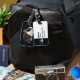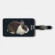En brun och vit nederländsk kanin, historiskt känd som Hollander eller Brabander, visas med öron upprätt mot mörkens bakgrund och framhäver dess mjuka päls och uppmärksamma uttryck. Sammansättningen understryker kontrasten mellan kaninens ljus och mörk päls.