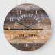 Brun Wood Family Farmhouse Wall Clock - Farmhouse stil-väggur för perfekten som tillägg till ge i ditt kök ett land dekorutseende.Anpassa med familj namn och upprätta ett år för en unik gårdsmur.