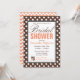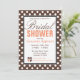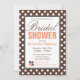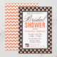 Cute och snyggt Inbjudningskort för möhippa med vit polka dots över brun på framsidan och en orange och vit zigzag-chevron mönster på baksidan. Anpassa med brickans duschdetaljer och välj även din pappra typ! Perfekt för höst/höst, eller vid någon tidpunkt på året.