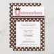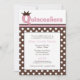 Fet och snyggt Quinceañera-inbjudningar med vit polka dots över brunt på båda sidor och en krona över den rosa färgaden "Q" i "Quinceañera".