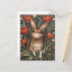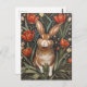 Brown Rabbit Red Tulips William Morris Inspired Vykort