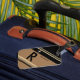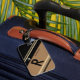 Svart och brunt diagonalt rand med ett litet flygplan och eget namn och första brev.. coola för snyggtens resenär