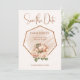 Skicka den här eleganten bho spara datumkortet till dina gäster för att din speciella dag med dig. Med vita och rosa orkidéer, grönt eucalyptus och torkat löv i guldbrunt ram. Vackert manus. Anpassa designen med din bridgrupp namn, datum och bröllop ställe.