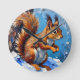 An adorable brown squirrel sheltering by a tree in during a snowy winter.