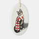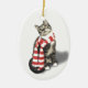 Brown Tabby katt i en röd och vit scarf Julgransprydnad Keramik
