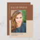 Personlig brun och brunt (redigerbart färg) studenten-skyltkort. Personlig med 2 foton, student namn, namn och studenten år. På baksidan finns ett annat foto tillsammans med en anteckning till vänner och familj. I detta meddelande kan man tala om vad student har åstadkommit i high school och/eller vad de har för planer för framtiden. Det kan innehålla information om ceremonin i studenten eller en inbjudan till studentfesten.