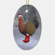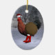 pappa jul har en söt kyckling som hjälpare i år - marscherar gärna med röda stövlar och hatt genom snö under vintern