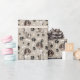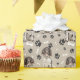 En bild av en söt brun och vit Springer-spanjor-hund finns i mönster på tillfällens gåva som är papper. Hund sitter mitt i mönster på svart tass avtryck och vita ben och upprepas med ljusbrun bakgrund.