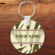 En nyckelkedja med brun och beige zebra tryck-bakgrund och ljus rosa trim. Anpassa med ditt namn över hela mittsektionen.