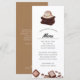 Personliga baktematiska matmenyer för ditt nästa mat-tema evenemang. Den har en akvarellillustration av en trave brownies med en glasskula på toppen. Under detta finns platser för din evenemangsmatmeny information.