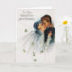 Vackert vintage bröllopsdagskort. En mycket romantisk brud och brudgum med "På er bröllopsdag" på framsidan. Inuti finns det anpassningsbara ordet "Grattis".