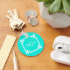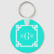 Brt Aqua Wht Grekiska Nyckel #2, 3-init Monogram Nyckelring