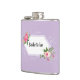 Brud att vara flaska för en bröllopsdusch med en akvarellblommig design och anpassningsbar text och lila bakgrund. Blombilderna är generöst tillhandahållna av freepik.