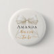 Fira din speciella milstolpe med denna snygga möhippa-knapp. Designen har en lyxig elfenbensfärgad båge prydd med ömtåliga pärlsträngar och sofistikerad guldfärgad text. Den fungerar som ett stilfullt tillbehör för bruden att bära under hennes brudvisning eller kväll ute med brudtärnor. Elfenbensfärgad bakgrundsfärg.