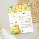 En stilren vit och gyllene akvarellbakgrund. Dekorerad med humlor, smältande honung och bikupa med gula blommor, blommor och en bröllopstårta med citroner. Med texten: Brud att bli skriven med en modern handskriven stilsnack. Anpassa och lägg till namnet på bruden att bli.
