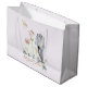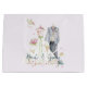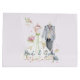 Brud & Brudgum design med en bröllopsklänning och brudgummens kostym med en bukett blommor