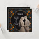 Brud & Brudgum Personlig Bröllopsinbjudan på svart med guld och en blomkant.