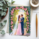 Brud & Brudgum Trädgårdsvalv | Blommig Bröllopsmål Vykort