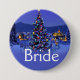 brud eller groom jul bröllop. Knappens Elegant och klassisk perfekt för dina julfester under julafton träd, helgdag. Snöblå värld med färgstarka Julgran och familjebelysningsbostäder, vintergröna träd och snögubbe, en gudomlig och fredlig vintage bild kommer att föra alla in på julstämningen och ge lycklig varma helgdag.