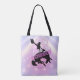 Rolig disco-senterbrud toteväska designad för brudlaget. I vackra övergångsfärger från lavendel till blåklint och rosa med en funky disko-kula, en cowboy-silhuett som bryter hästar, en glamorös retrofont "Bride 'em Cowboy" (motsvarande "sätt en ring på det") och en bakgrund med disko-ljus. Sök på ID928 för att se andra produkter i denna trendiga kollektion.