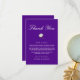 Ett brud- och brudgumstemat tackkort för bröllop, tillverkat av bomull i eleganta lila och plommonfärgade nyanser, ger ett graciöst sätt att uttrycka tacksamhet till era gäster. Kortet har högkvalitativt papper, som ger en lyxig textur och känsla. Dess rika lila och plommonfärgade nyanser skapar en visuellt slående bakgrund, lämplig för att förmedla sofistikation och tacksamhet.