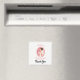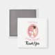 Bröllopsfest tackar magnet. Designad med en illustration av en leende brud som håller en brudbukett i sin fina vita brudklänning och bär en slöja. Satt inuti en rosa oval ram med en vågig kant.