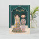 Bröllopsinbjudan kort bruden och brudgummen söt par i traditionell indisk klänning seriefigur