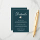 Informera dina gäster om de vackra detaljerna på din bröllopsdag med vårt Enkla och Minimalistiska Bomull Gröna Eleganta Infogningskort. Detta kort är det perfekta tillskottet till din bröllopspappersutställning! Det har en tidlös tealgrön färg med elegant vit text, vilket ger en touch av sofistikering till dina bröllopsinbjudningar. Den minimalistiska designen säkerställer att dina viktiga detaljer framträder utan några distraktioner.