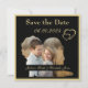 Meddela ert bröllop med ett snyggt, guld, modernt bröllops-kort som sparar datum, med ett foto i form av en siluett av brud och brudgumme på framsidan och ett annat foto på baksidan. Med elegant guldskrift. Lätt att anpassa. All text och bakgrundsfärger är redigerbara. Om ni behöver hjälp med designen eller matchande produkter, vänligen maila Brandi@photobooksbybrandi.com