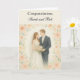 Det här bröllopskortet har en akvarellillustrerad bild av brud och brudgum med blomster ram. Ett mallskapad kort med ett internt meddelande. detta kort är ett genomtänkt sätt att gratulera bruden och brudgummen ,