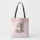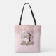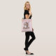 En väska för en brudtjejsoffa eller möhippa. En ljus rose gold, rosa bakgrund med elegant rose gold dropar färg dropar look. Anpassa och lägg till ett foto av bruden att vara. Fyrkantigt foto. Dekorerad med rose gold falska glitterdropar och texten: Brud skriven med en ballongstil font.