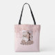 En väska för en brudtjejsoffa eller möhippa. En ljus roséguld, rosa bakgrund med elegant roséguld dropar målarfärg droppande look. Personifiera och lägg till ett foto av bruden att vara. Fyrkantigt foto. Dekorerad med roséguld falska glitterdropar och texten: Brud skriven med en ballongstil font.
